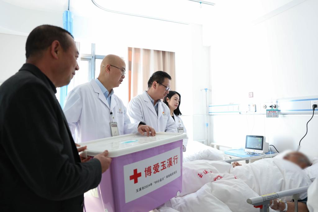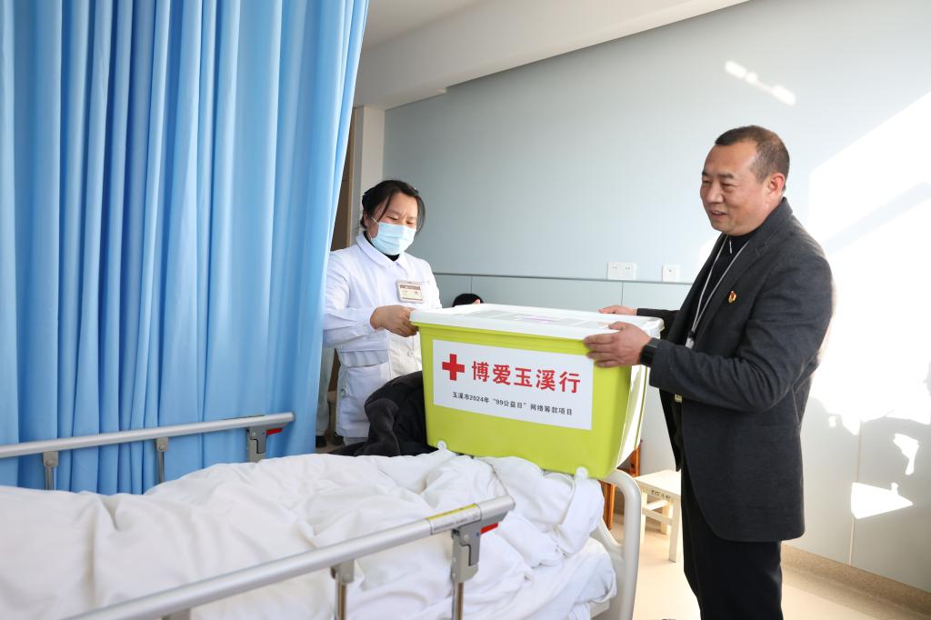 同一天,院领导们还携带“博爱玉溪行”网络筹款爱心物资走进病房,对困难的住院患者开展新春慰问活动。不仅给正和病魔较劲的困难住院患者们送去了新春的问候和祝福,还送去了满满的希望和力量。