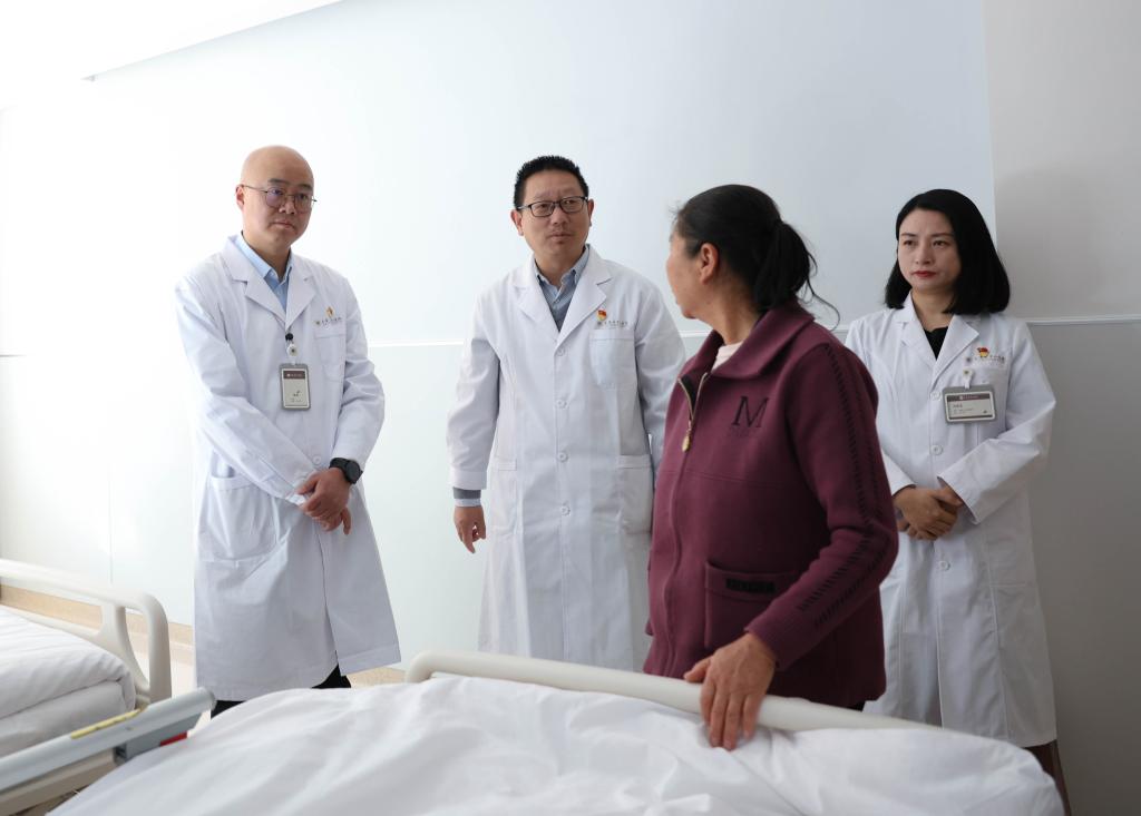 在每个病床边,院领导们都会像老朋友一样,关心询问他们的病情和治疗情况,鼓励他们保持愉快的心态,在医生和护士的精心照料下,很快就能重新拥抱健康的生活,院领导的鼓励就像给患者打了一针强心剂,让患者及家属心里暖洋洋的,拉近了医患之间的距离。